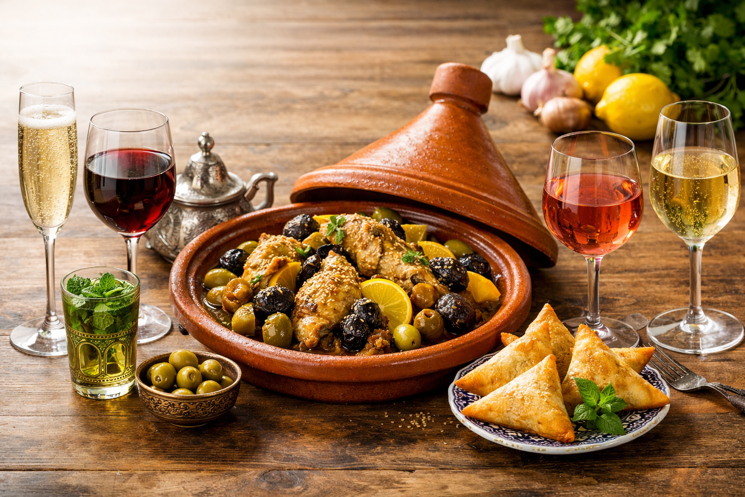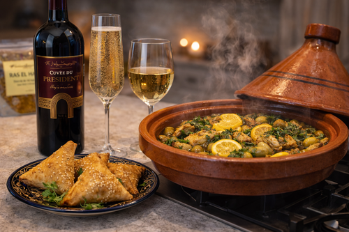 - Un tajine préparé pour vous avec un verre de vin